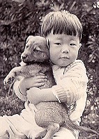 動物が大好きだった幼少時代。飼っていた愛犬との写真。その後、東金市から千葉市登戸のアパートに引っ越すことに。アパートでは犬が飼えないため、やがて悲しい別れがやってくることも知らなかった頃。