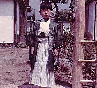 6歳の時、千葉市若葉区の団地に引っ越した頃の写真。引越しの記念ということで、なぜか七五三の衣装を着てカメラに写りました。まだカラー写真が出始めの頃で、色合いがいま一つ。
