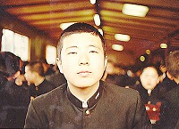 中学3年生の修学旅行での写真。伊豆での昼食風景。田舎の中学で剣道部員だった私は……坊主頭でした。